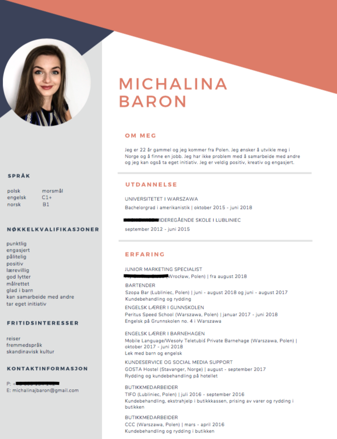 Link do profilu na linkedin. Jeśli przygotowujesz curriculum vitae po polsku zamieść w nim zdjęcie. Informujemy ze przesłanie cv oznacza jednoczesną zgodę na przetwarzanie państwa danych osobowych. Coraz częściej zdarza się że pracownicy nie umieszczają w cv własnego adresu zamieszkania. Obecnie pesel jest niezbędny do dochodzenia roszczeń w związku z tym poleca się wpisywanie go do umowy przy wysokim ryzyko dochodzenia roszczeń. Prosimy o dołączenie w cv klauzuli.