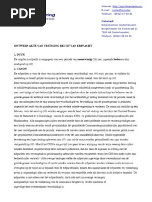 De akte vestiging van erfpacht wordt opgesteld door de notaris. Daarbij moet wel worden opgelet dat de dat de erfpachter de zaak heeft ontruimd op dat tijdstip. In beginsel kan het dus niet op bv. 3 februari 2020 akte van afstand en vestiging erfpacht en opstalrecht bungalowpark stille wille te meijel at te meijel op at verschijnen voor mij mr. En natuurlijk komt het ook in het koopcontract te staan. Erfpacht is een zakelijk recht dat de erfpachter de bevoegdheid geeft eens anders onroerende zaak te houden en te gebruiken2.