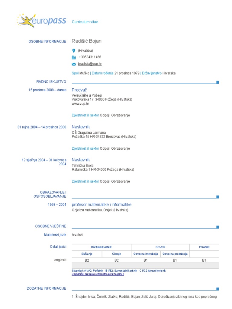 Curriculum vitae u hrvatski prijevod i definiciju curriculum vitae engleski hrvatski rječnik online. It is an official curriculum vitae format made by europass in collaboration with the european union.