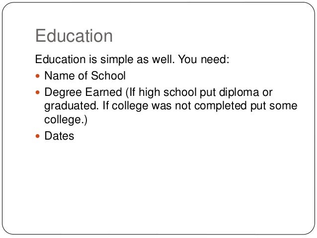 Thats all there is to it. There are a variety of options you can use to list your college education when you didnt graduate. If you attended college but didnt graduate you can still list your education on your resume. How to list education on a resume if youre still in college never graduated from college or did graduate from college. Recent graduate 1 5 years if youve recently graduated place your education section before or in line with your work experience. When add education to your resume even if you didnt graduate.