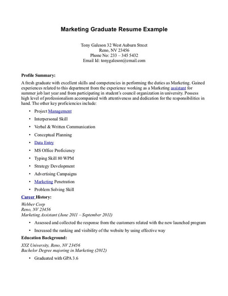Resume sample of a graduate of marketing specializing in international marketing with a genuine talent for being able to analyze interpret and manipulate statistical data for marketing and communication strategies. As a recent college graduate your education is one of your strongest assetsinclude an education section towards the top of your resume. A summary for a resume needs to dash off your professional achievements and your skills that are relevant to the job ad. Still this resume could benefit from a clearer structure. Add the portfolio url to your resume contact information section. Marketing graduate for lancôme resume examples samples help and support the marketing team and take care of specific projects create develop and implement communication material eg.