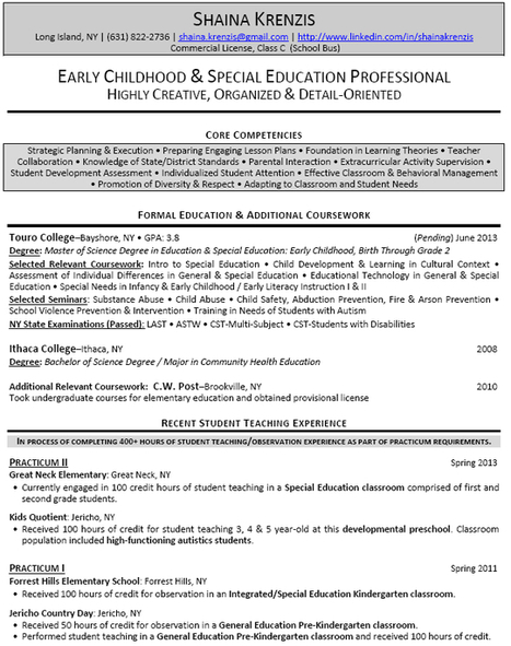 Its actually very simple. Special education aide roles often require a some college courses degree or higher so the majority of special education aide resumes that we looked at contained a some college courses degree. Tailor your resume by picking relevant responsibilities from the examples below and then add your accomplishments. Here is a list of education related resume examples to give you ideas for your own resume. The list includes resumes for early childhood education teaching abroad and related positions such as camp counselor and librarian. There are plenty of opportunities to land a special education teacher position but it wont just be handed to you.