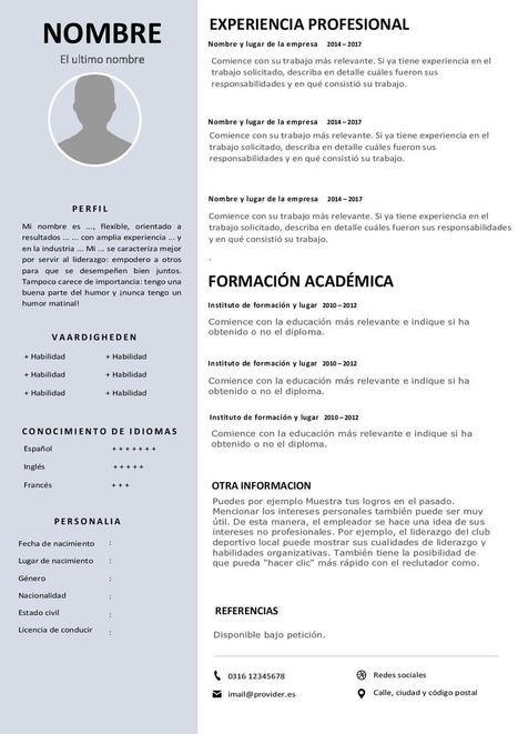 Anticiperen op en bewaken van de voortgang van gemaakte afspraken en plannen. Bij een functioneel curriculum vitae wordt de werkervaring niet per tijdsperiode beschreven maar op basis van taken of verantwoordelijkheden op basis van gevraagde vaardigheden of op basis van functionele aspecten. Voorbeelden van een goed cv sta je op het punt om te solliciteren maar ben je nog niet zeker van jouw cv. Stepstone heeft alvast enkele goede voorbeelden van een curriculum vitae voor je verzameld die je als inspiratie kan gebruiken. Naast het competentiegericht onderwijs zien we de competenties steeds meers de boventoon voeren in de zoektocht naar talent. Naast het standaard cv wat we allemaal kennen bestaat er ook een vaardigheden cv waarin niet de werkervaring maar juist de vaardigheden en prestaties van een kandidaat centraal staan.